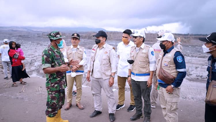 TIMES Biak/Ketua Dewan Penasehat Partai Gerindra DPD Jawa Timur, Bambang Haryo Soekartono bersama DPC Partai Gerindra Surabaya, Lumajang dan Malang saat meninjau dan menyerahkan bantuan Bencana Erupsi Gunung Semeru.Foto Partai Gerindra Jatim