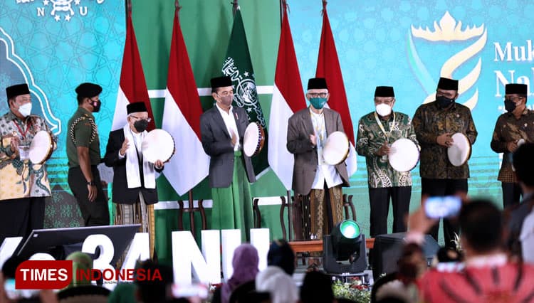 TIMES Biak/Presiden Jokowi (Joko Widodo) membuka secara resmi Muktamar Ke-34 Nahdlatul Ulama di Pondok Pesantren Darussa’adah, Gunung Sugih, Lampung Tengah, Rabu (22/12/2021). (FOTO: Moh Ramli/TIMES Indonesia)